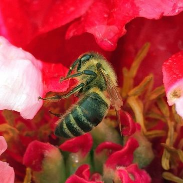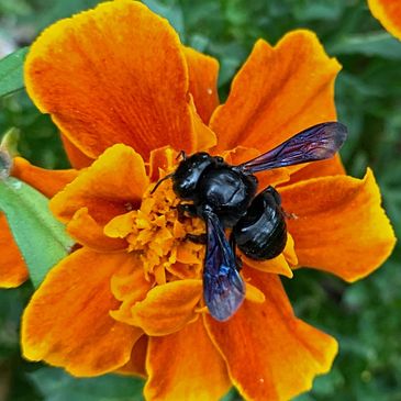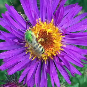 A solitary bee that nests underground. Friendly and non-aggressive. They typically do not sting or bite. Important to flower pollination.