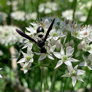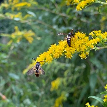 Wasps are an important component of a healthy ecosystem. The vast majority of native wasps are gentle and solitary. They feed on insects that destroy crops but they also aid in pollination.
